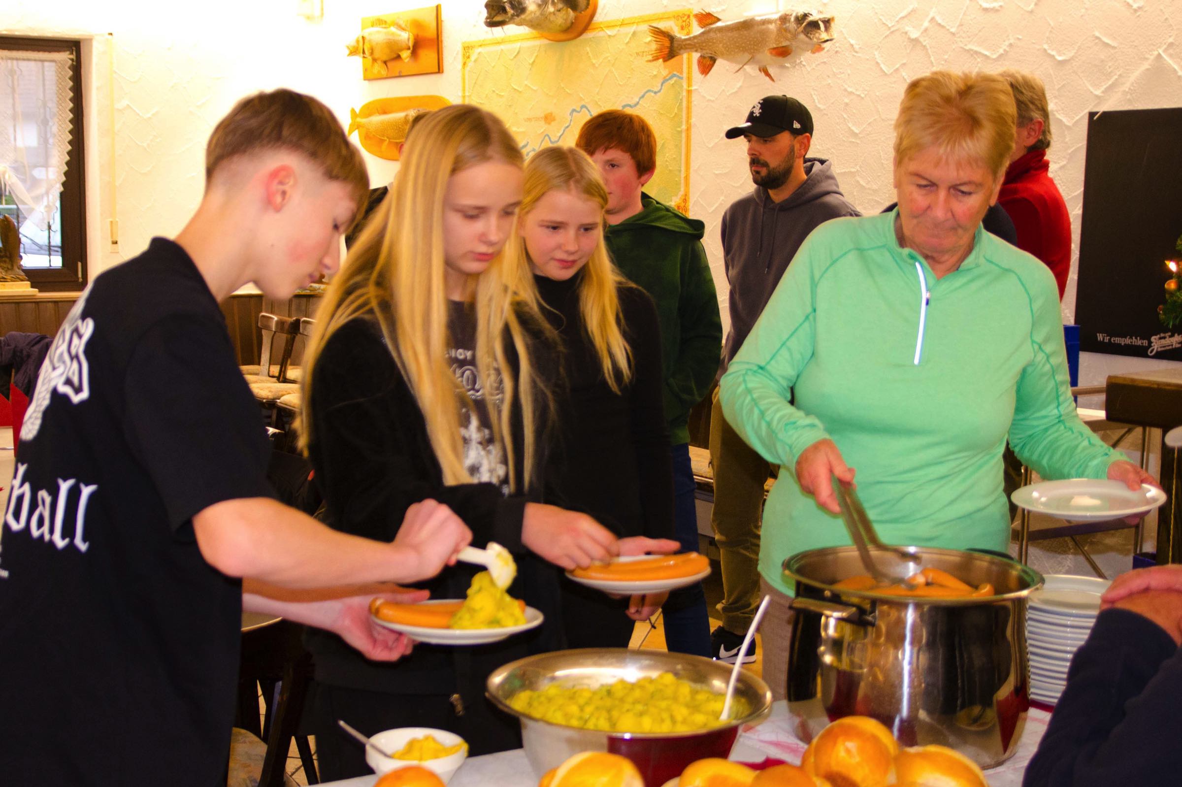 Der Einladung zu dieser letzten Veranstaltung in diesem Jahr folgten 17 Jugendliche. Was mich sehr gefreut hat. Nachdem ich die Anwesenden begrüßt und mich für den Besuch der drei Vorstände bedankt hatte, haben auch noch Norbert und Karl-Heinz ein paar Worte zu den Jugendlichen gesprochen. Um 15.00 Uhr ging die Feier dann endlich los, mit Punsch, Wienerle, Kartoffelsalat, Brötchen und Plätzchen.