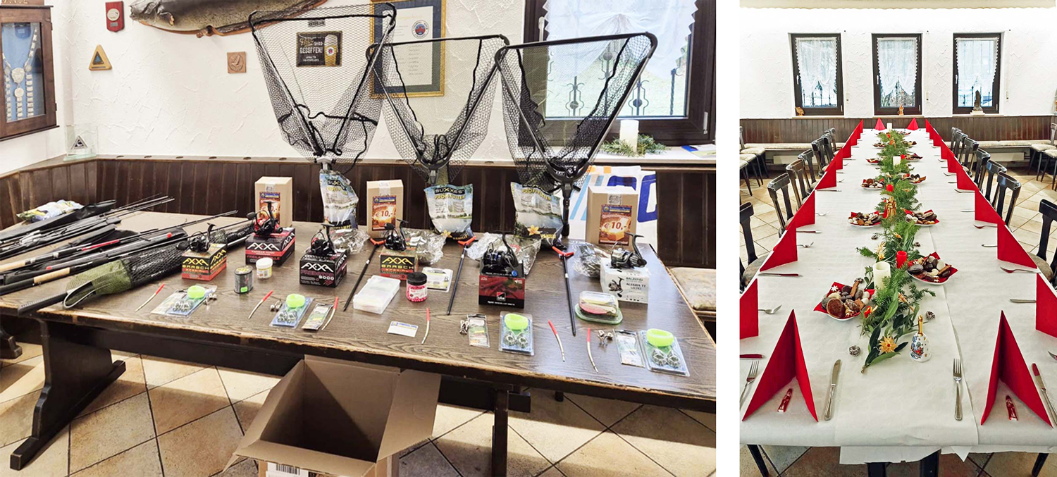 Nach einer Begrüßung durch unsere Vorstände, die treue Gäste unserer Weihnachtsfeier sind, einer kurzen Ansprache und dem Jahresrückblick 2025 von mir, kam unser Punktesystem zum Einsatz (jede besuchte Veranstaltung bringt dem jeweiligen Jugendlichen Punkte ein). Wer also am Jahresende die höchste Punktzahl hat, darf als Erster an den Geschenketisch, um sich etwas auszusuchen. Die Geschenke wurden von Alex Fischer bei der Firma Fisherman's Partner eingekauft. Für die teilweise von diesem Angelladen gesponserten Angelutensilien möchten wir uns herzlichst bedanken.